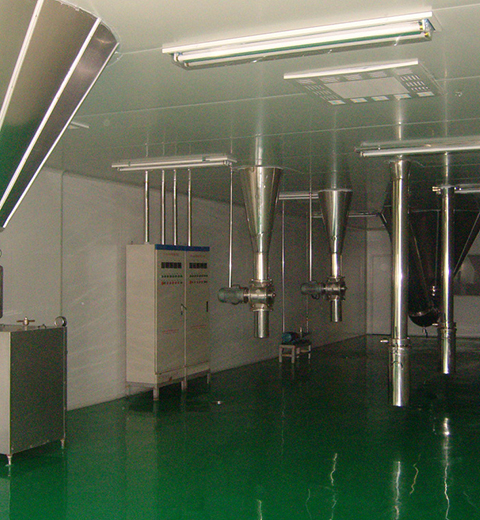 潔凈空氣冷卻后進(jìn)入制粒塔,在塔內(nèi)使用離心造粒專用噴頭,通過(guò)變頻調(diào)速將各種料液霧化成所需要的微小液...