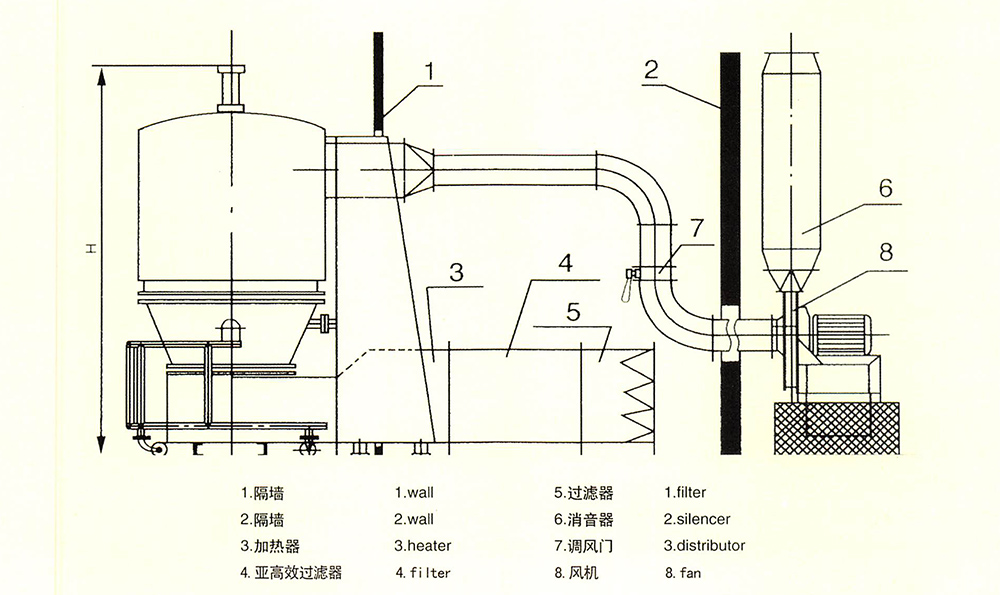 ※ 空氣經(jīng)加熱凈化后,由引風機從下部導入,穿過料斗的孔網(wǎng)板,在工作室內(nèi),經(jīng)攪拌和負壓作用形成流態(tài)化,水份快速蒸發(fā)后隨著排氣帶走,物料快速干燥。