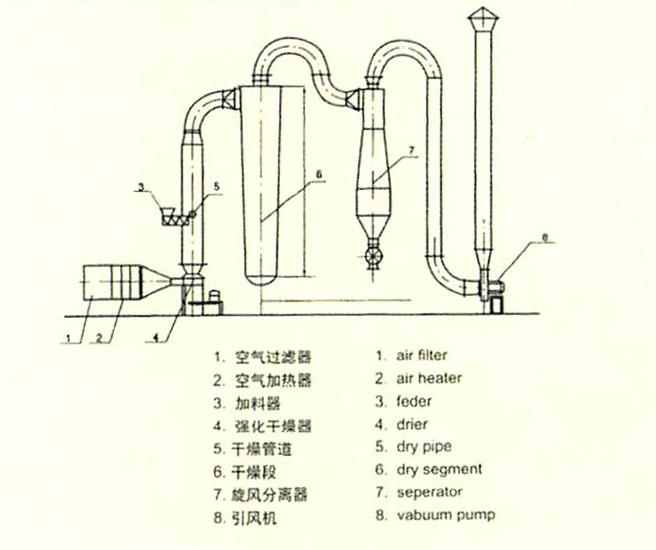 ※ Air drier can remove moisture from the xurface of raw materials of granule or powder that are easy to dehydrate ,under the air of drying, the quality of finished products can be controlled to the best state because of raw material can stay here in a short time, The drier of our factory is developed on the basis of basic type to add a reinforced device of stepless speed exchange, When the humidity and pushing of rotating knives ,the surface of raw material is broken to fine granule, It moves onto the same time of drying, Finally it enters into humidity and heavy granule that is not absorbed by air is broken and dried continuously till entering the drying pipe.