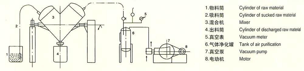 ※ This machine is suitable for mixing two or more dry and powder or granule raw materials from pharmaceutical industry, chemical industry, foodstuff industry and so on.